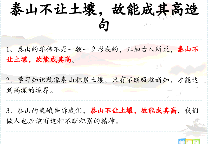 山不让土石造句